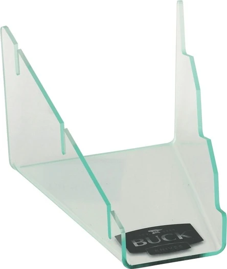Clear acrylic construction with black Buck logo. 4 5/8″ wide x 5 1/2″ deep x 3 3/4″ high.