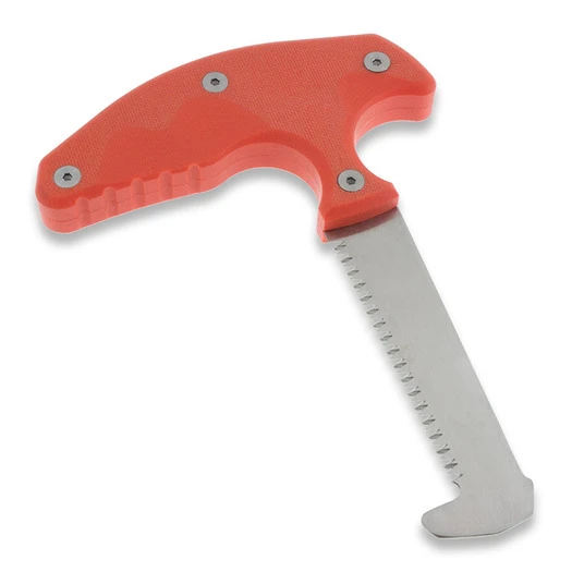 The Casström Field Saw allows you to open the chest cage and pelvic bone on larger game safely and quickly without puncturing the gut or making unintended damage. The teeth on the saw have been precision ground for fast and efficient cutting. The end of the blade has been rounded off and features a safety tip. The saw blade is made using a high quality stainless blade steel that makes the saw very durable but also easy clean in a hygienic way. The handle and saw blade has been designed in a unique way to allow the blade to be replaced if needed in the future. The handle is made from precision milled, impact resistant and weatherproof G10 laminated glass fibre. This material does not absorb any blood or liquids and is very strong and durable.
