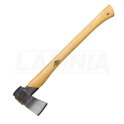 Can be managed with one hand. Forged and ground to a concave, quite thin blade at the bit. This design helps the axe to go fast into the wood – and then split efficiently when the thicker part hits and pushes apart the wood. The poll of this axe, like the poll on most axes, is not designed for pounding on a wedge.