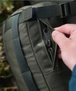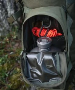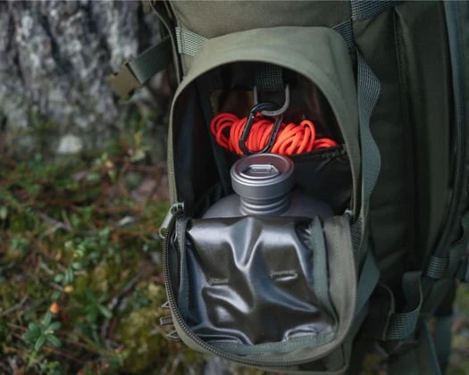 Small four litre backpack side pouch with rudimentary internal organization and external compression strap loops.