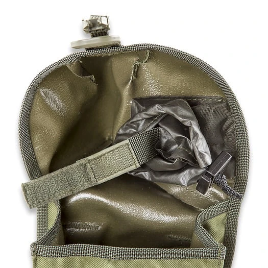 A pouch for a one-litre military canteen. Can be attached to vests/plate carriers, backpacks and belts. Fitted for easy use. A separate pocket inside for a special cap for use with a gas mask. A flap closed with a Soft Snap quick-release buckle. A drain hole at the bottom.