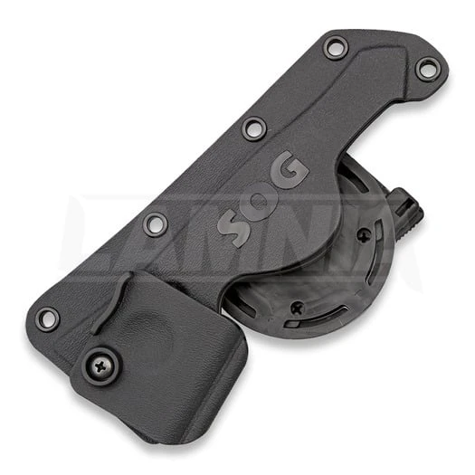 Black molded hard nylon sheath with 360° rotating clip. Made to fit SOG FastHawk.