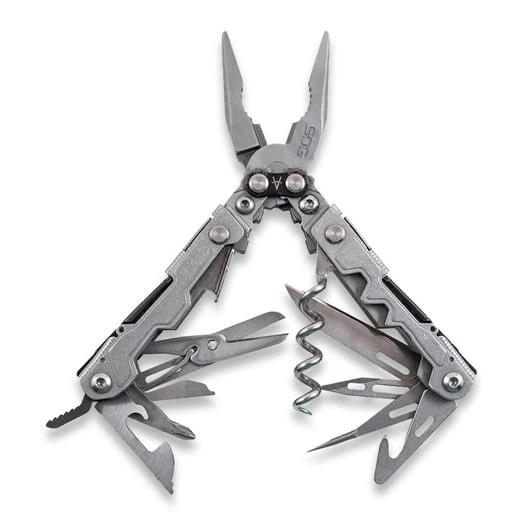 3.2″ closed. 5″ overall. Tools include: Needlenose pliers l Wire cutter l Scissors l Ruler l Phillips screwdriver l Can opener l Bottle opener l Corkscrew l Awl l Metric ruler l Large blade l Wire crimper. Bit holder latch, jewelry driver, hook cutter, protractor, bolt gripper, magnetic bit holder.