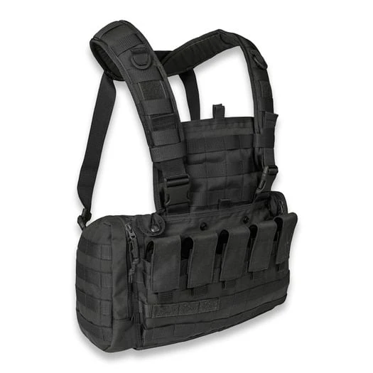 Adjustable padded straps. Two multi-purpose pockets (suitable for US 1 liter water bottle) on the side. Fold out pocket for armour plates (not included in delivery). Five magazine pouches M4 โ M16 or STG on front. MOLLE system on all the important attachment areas. Magazine pouches closed by Velcro, side pockets by zipper.