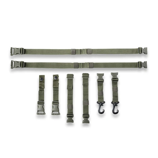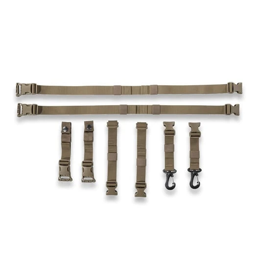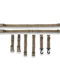 Adapter set for attaching an EDC pouch or other pouches to the backpack shoulder straps.