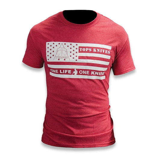 Construction: Cotton; Color: Red; Other Info: One Life One Knife American flag logo on front.